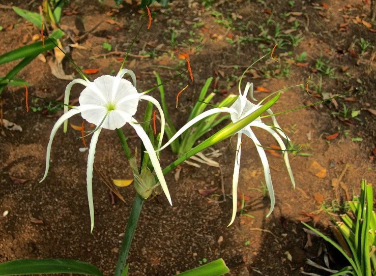 Bright green 8′ to 9′ Heliconia rostrata or lobster claws were growing in the lower planting bed between the two walls, on either side of the center steps that lead to the “lower lawn.”
