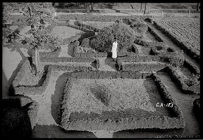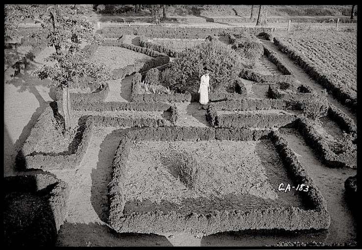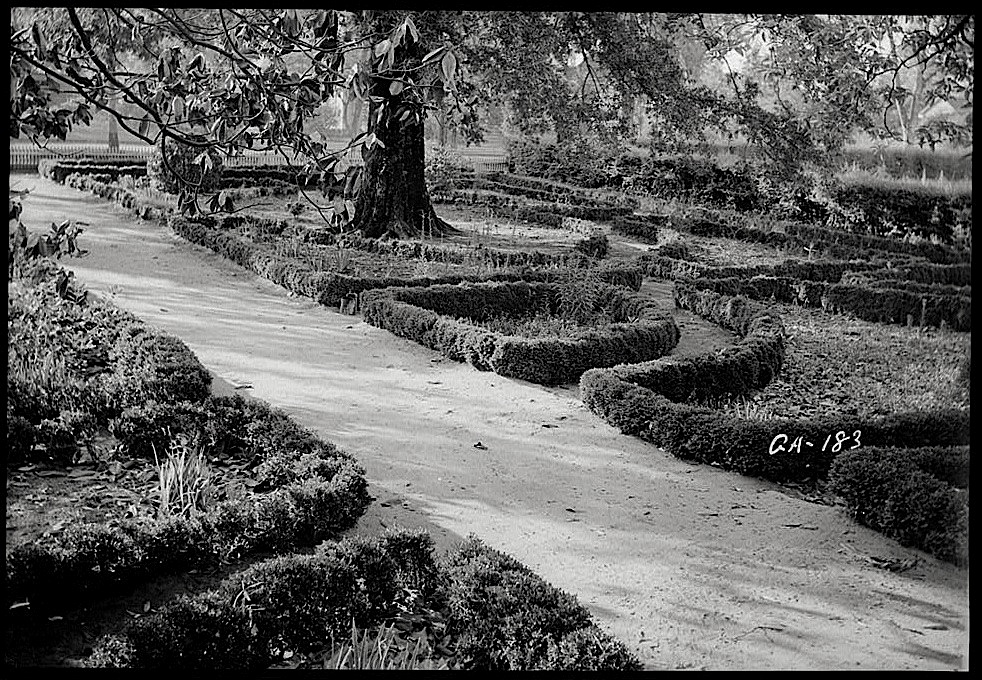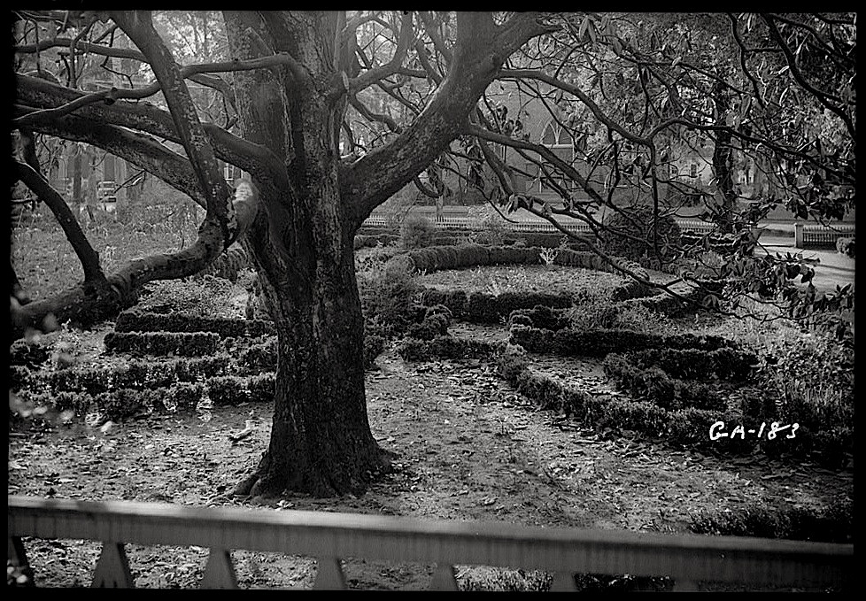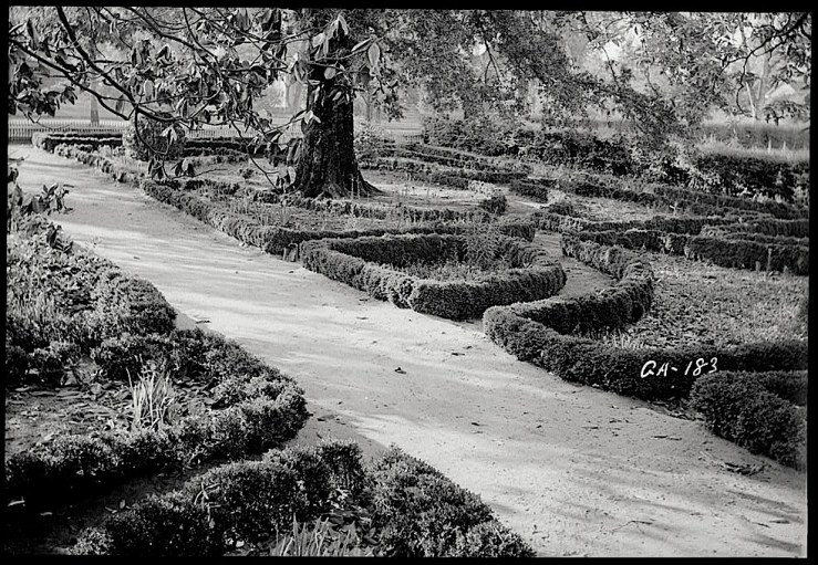 The parterre, viewed from the porch of “Boxwood” (Kolb-Pou-Newton House), Madison, Georgia, June 1936, by L. D. Andrew for an Historic American Building Survey (HABS), via Library of Congress Prints and Photographs Division (all three photos).
