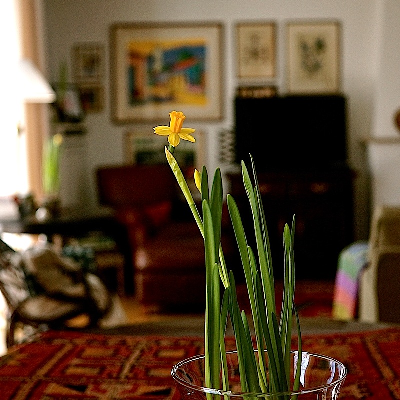 I thought I would share it for today’s “In a vase. . .,” since I haven’t been able to buy flowers, and nothing is blooming in the yard (although I think I will see primroses along the fence by next week).