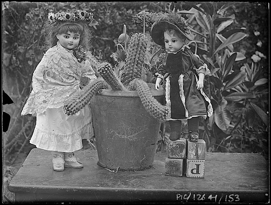 Two dolls with a potted cactus, Cuppacumbalong, Australian Capital Territory, ca. 1893, via National Library of Australia Commons on flickr.