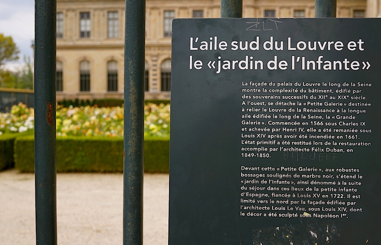The space is named “Garden of the Princess” for Mariana Victoria of Spain. The three-year-old Infante was brought to live in the Louvre in 1721 when she was engaged to the preteen King Louis XV.
