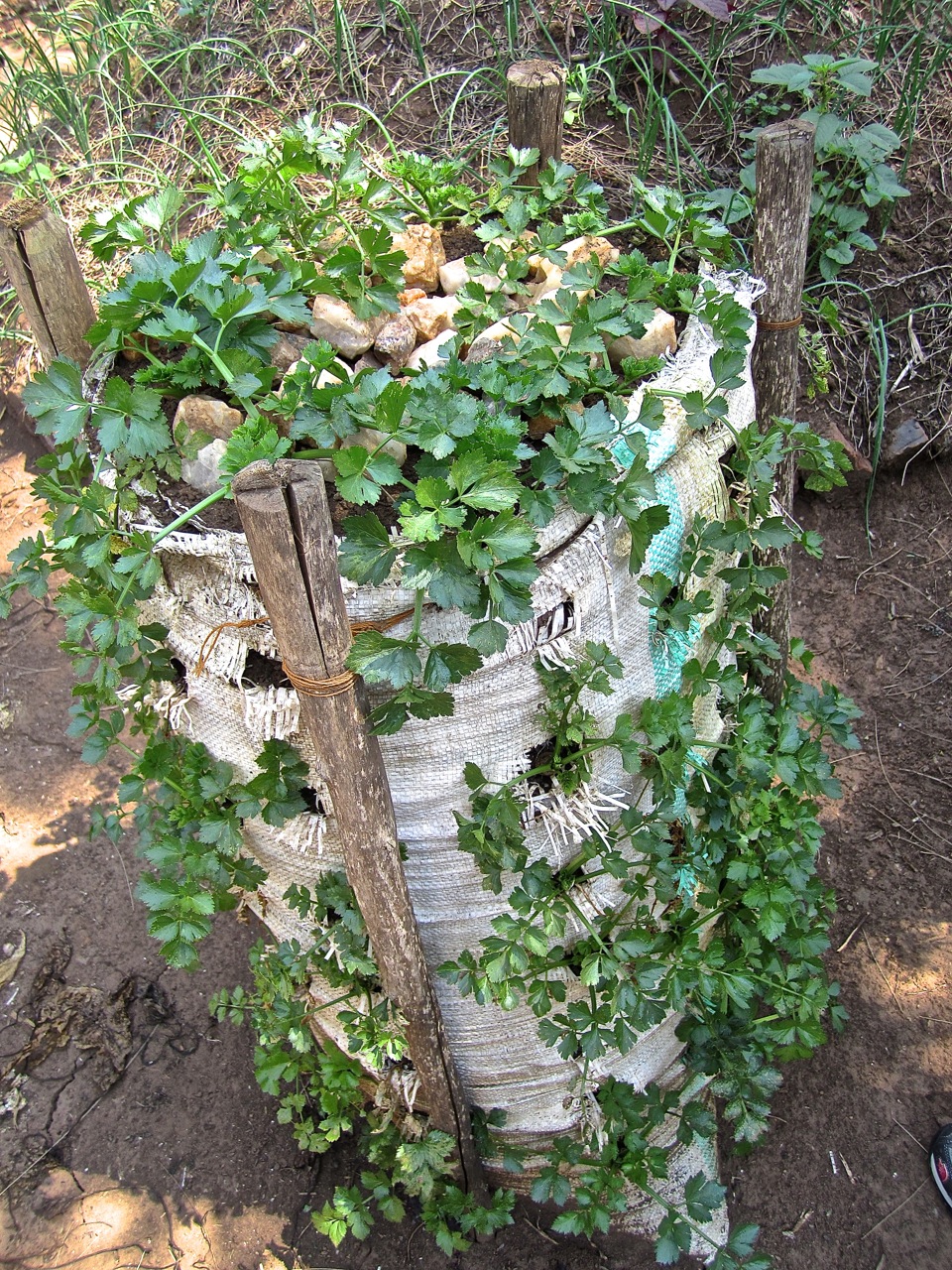 We came to a large field of various types of garden beds, including the above terraced mound garden of carrots, onions, and parsley . . .
