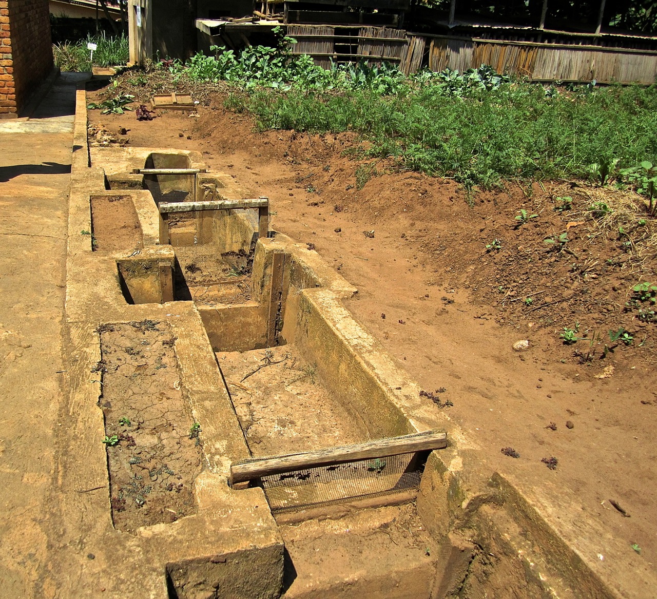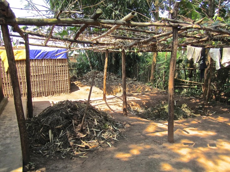 After we left the animals, we came to the compost shed. The still-cooking pile on the left was beautifully squared off. Richard told us good dimensions for a pile are 1.5 meters wide by 1.5 meters high (and 7 meters long, but this one was about 3-4 meters long).