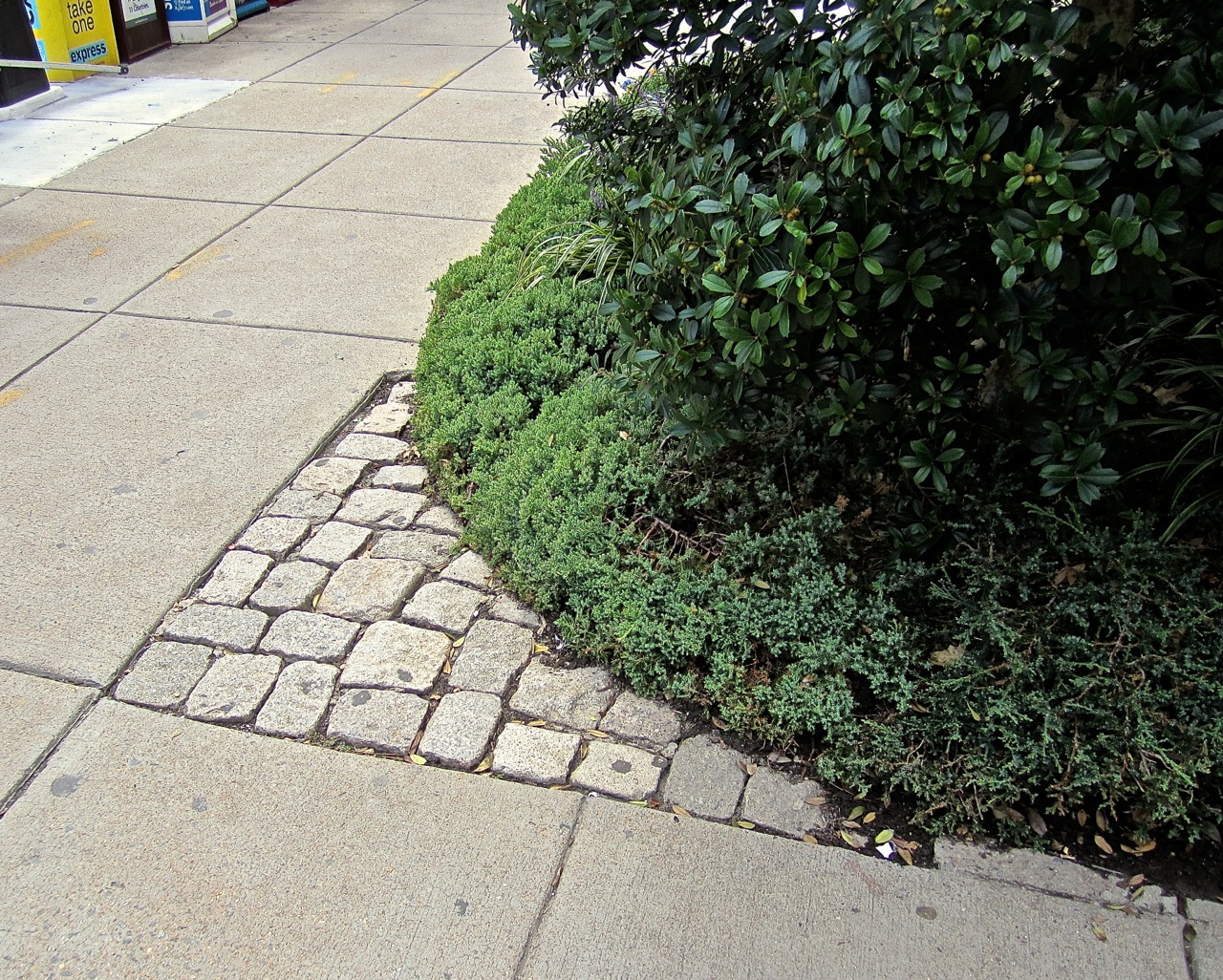 BELOW: In front of a D.C. office building, I also spotted this nice solution to those sharp planting bed corners that are always bare dirt because people cut across them.