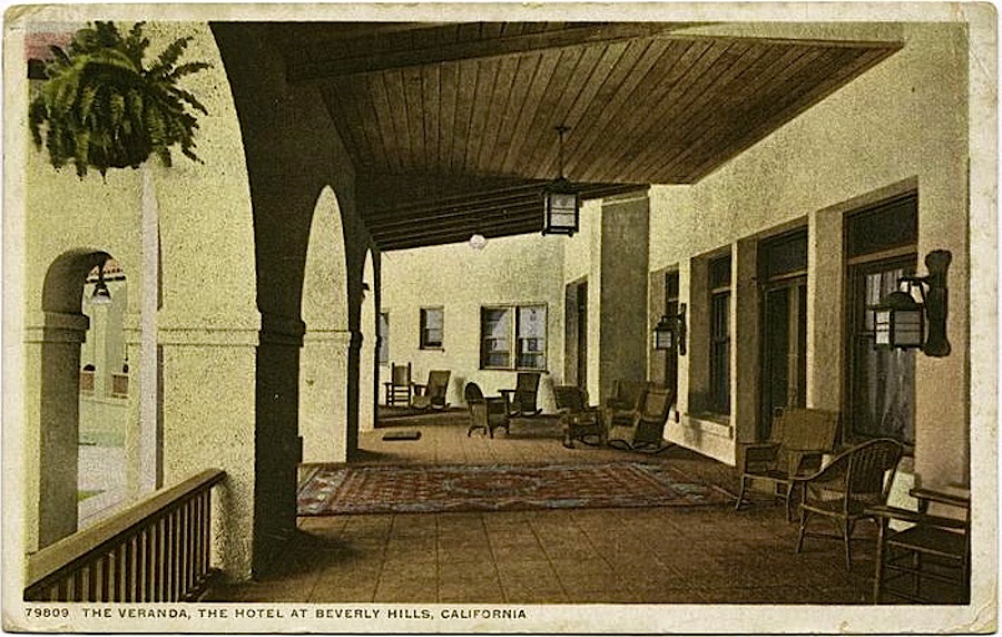 “The Veranda, The Hotel at Beverly Hills, California,” ca. 1889 – ca. 1931, a postcard by the Detroit Publishing Company, via New York Public Library Digital Collections.