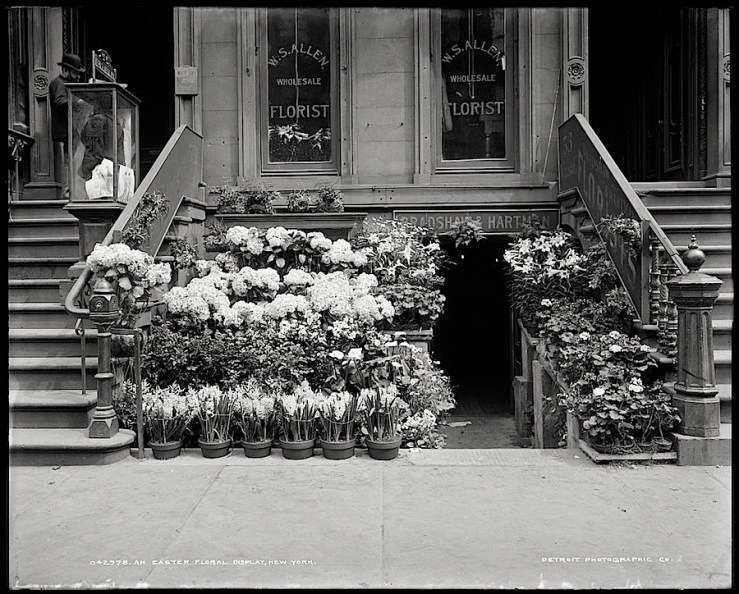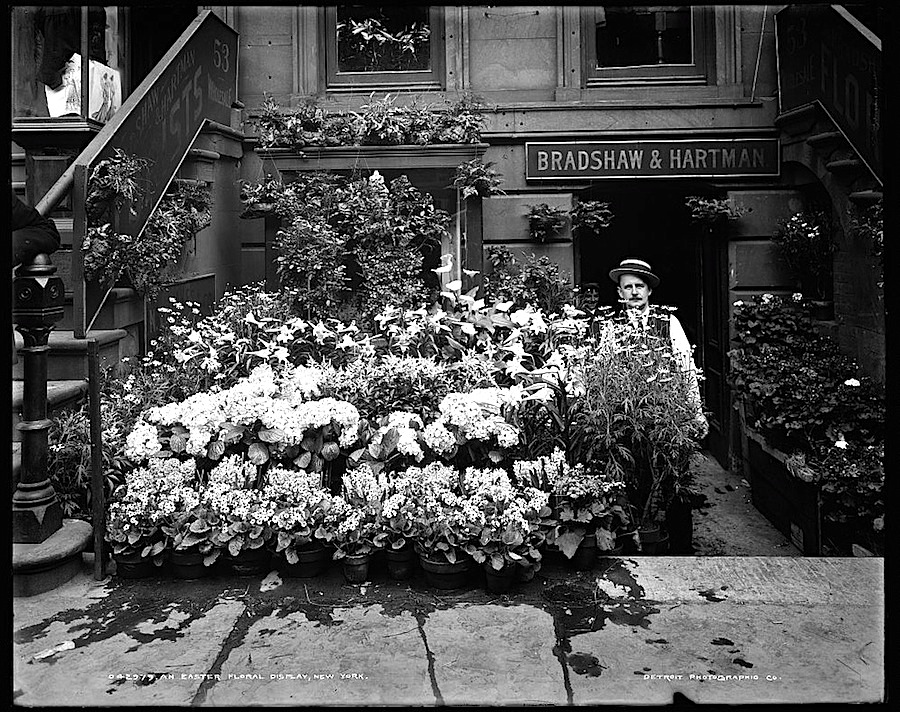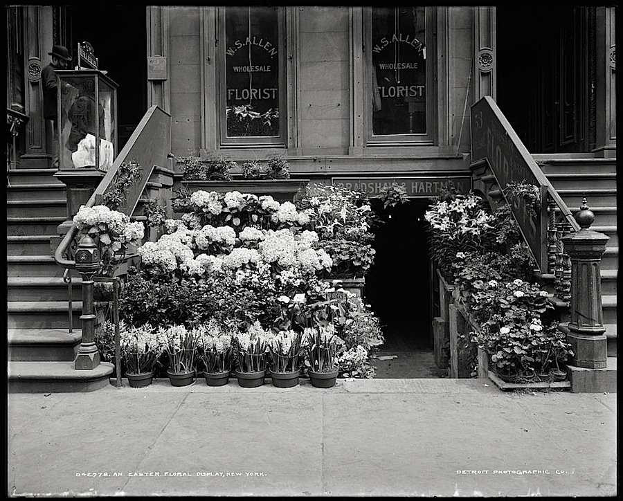 An Easter floral display at Bradshaw & Hartman, New York City, between 1900 and 1905, by Detroit Publishing Co., via Library of Congress Prints and Photographs Division (both photos).