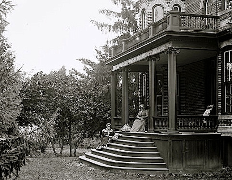 This was the front porch of “The Firs” in New Baltimore, Michigan, between 1901 and 1910.* At that time, it was a summer boarding house.