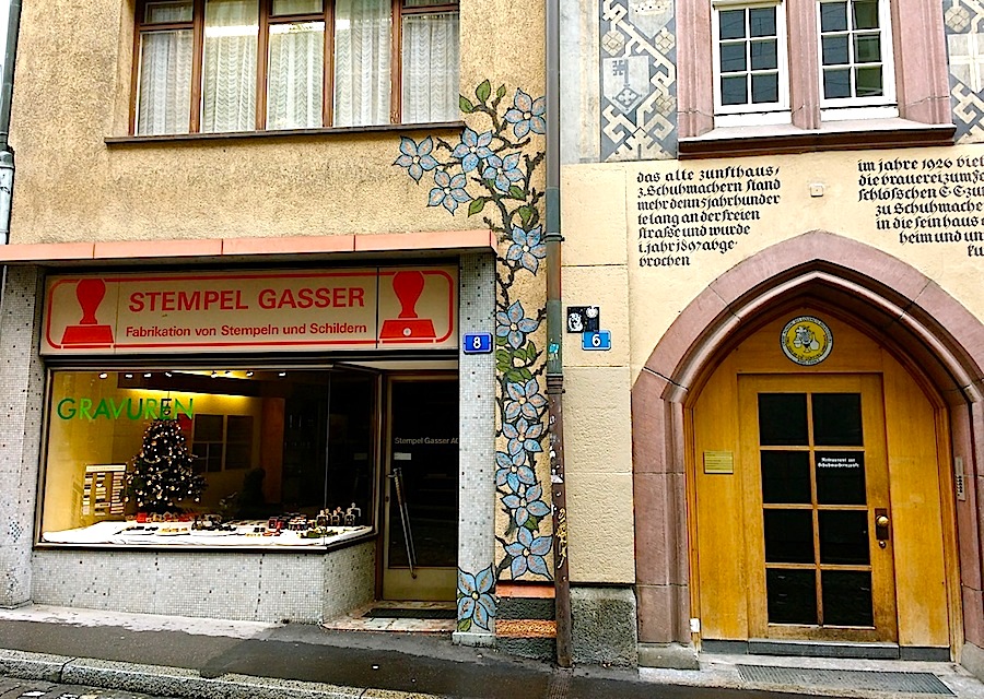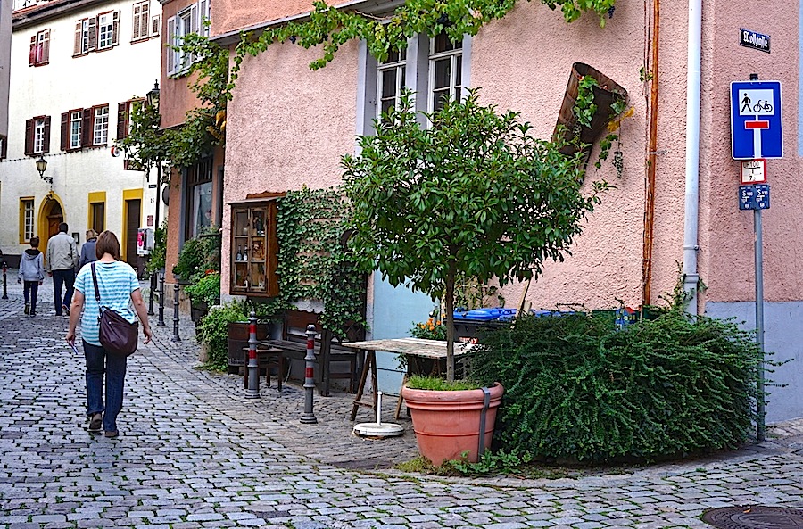 In the early evening, we walked through the nearby small city of Esslingen am Neckar, and I spotted this sweet doorway arrangement with espaliered ivy.