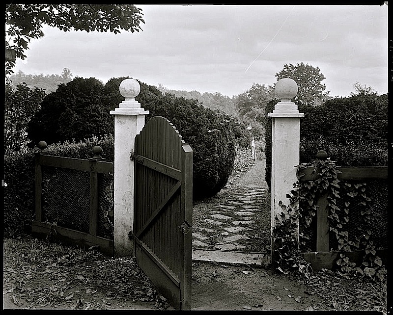 The gate, Redlands, LoCThe Redlands estate is at Carter’s Bridge, near Charlottesville, Virginia.  All photos here taken in 1933, by Frances Benjamin Johnston, via Library of Congress Prints and Photographs Division.