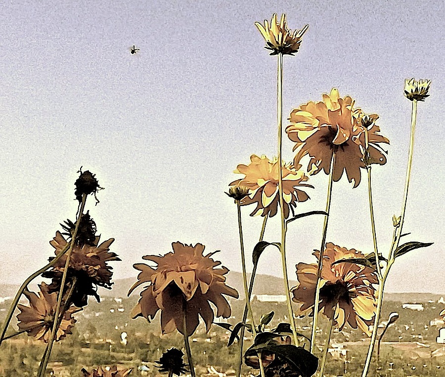 The sunflowers bloomed while we were gone.