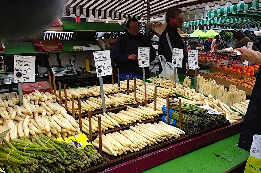 From now through May, everyone in Stuttgart will be eating lots of white asparagus. Mmhh. . . lecker (delicious).