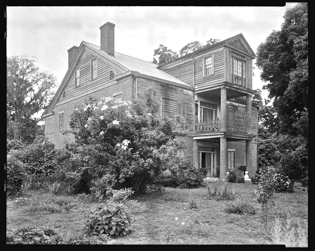 A 2003 Historic American Buildings Survey (HABS) drawing of the property seems to indicate that the enormous Quercus Virginiana or live oak tree at the right in the top photo was still standing at that time. Over 15 live oaks are shown in the area immediately in front of the house.