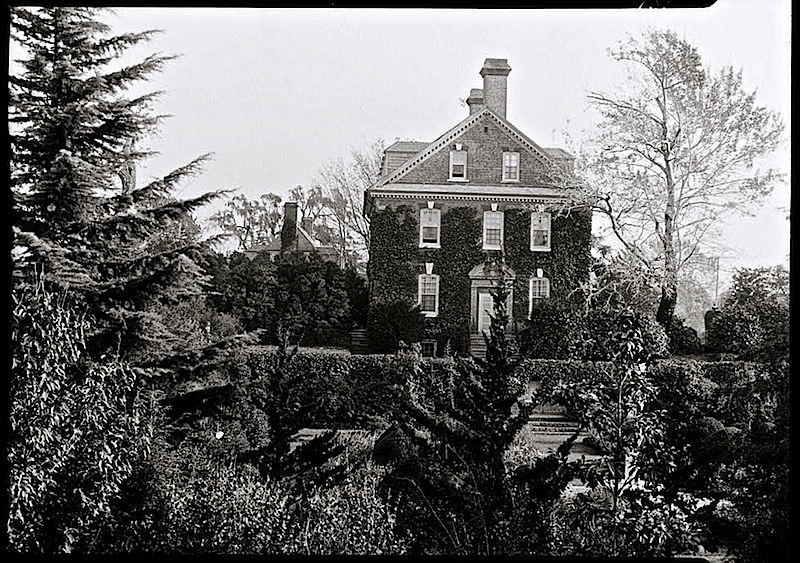 The side view of the house, ca. 1915 (I think it may be later), HABS. The front boxwood hedge is on the left.