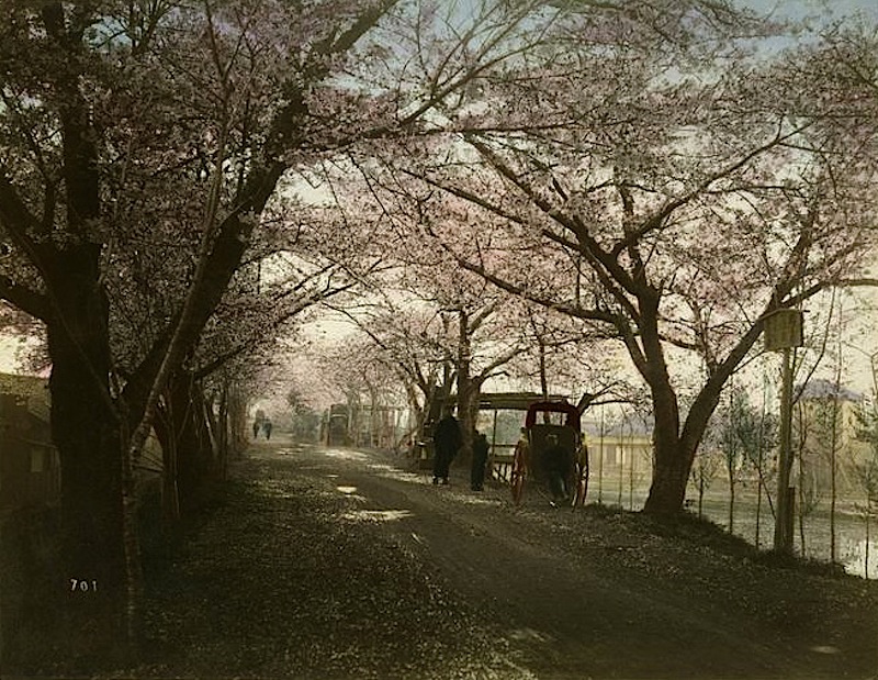 “Cherry Flower-Street, at Mukojima, Tokio,” ca. 1880s -90s, by Kimbei Kusakabe, via The New York Public Library Commons.