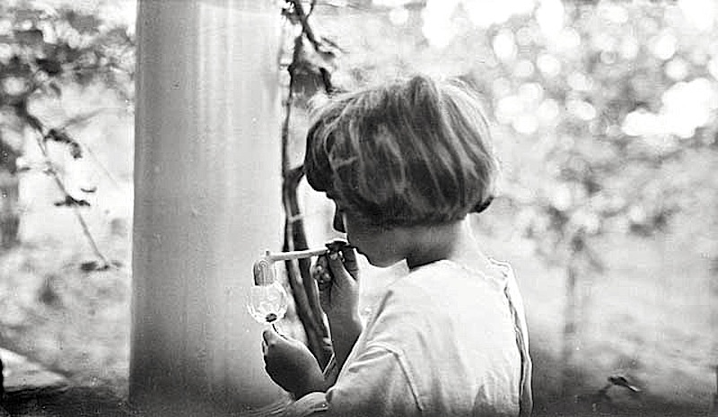 “Girl blowing bubbles on a daisy at Harvey’s,” Toronto, Ontario, June 25, 1916, by John Boyd, via Library and Archives Canada Commons under CC license.