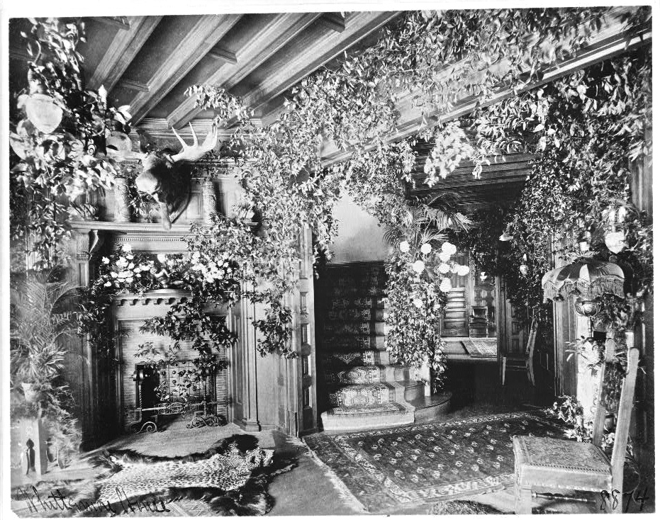 It was the interior of Whittemore House, at Dupont Circle* in Washington, D.C. Johnston took the photo sometime between 1890 and 1920. In addition to the copious foliage, it features a leopard rug and a moose head.