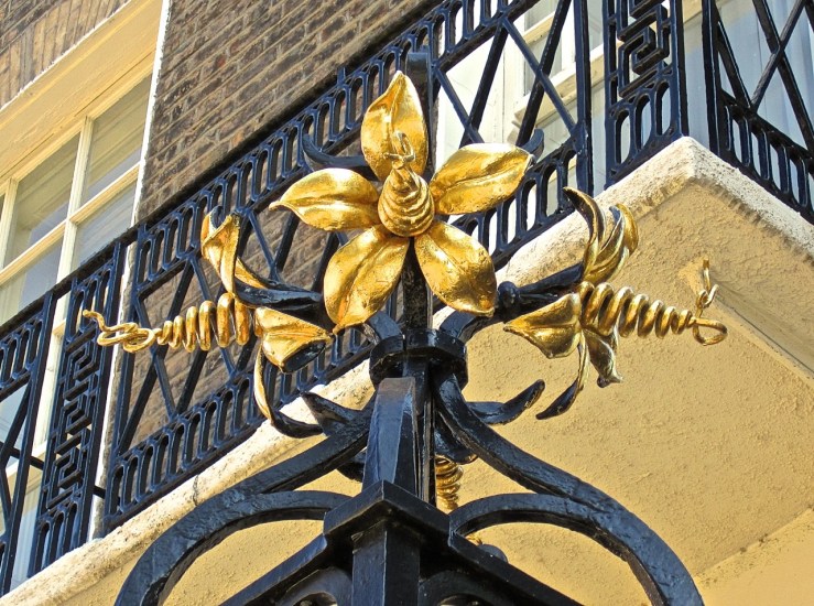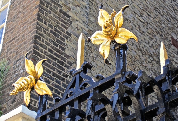 I loved these flower finials atop a rather stately iron gate on Montague Street, not far from the British Museum.