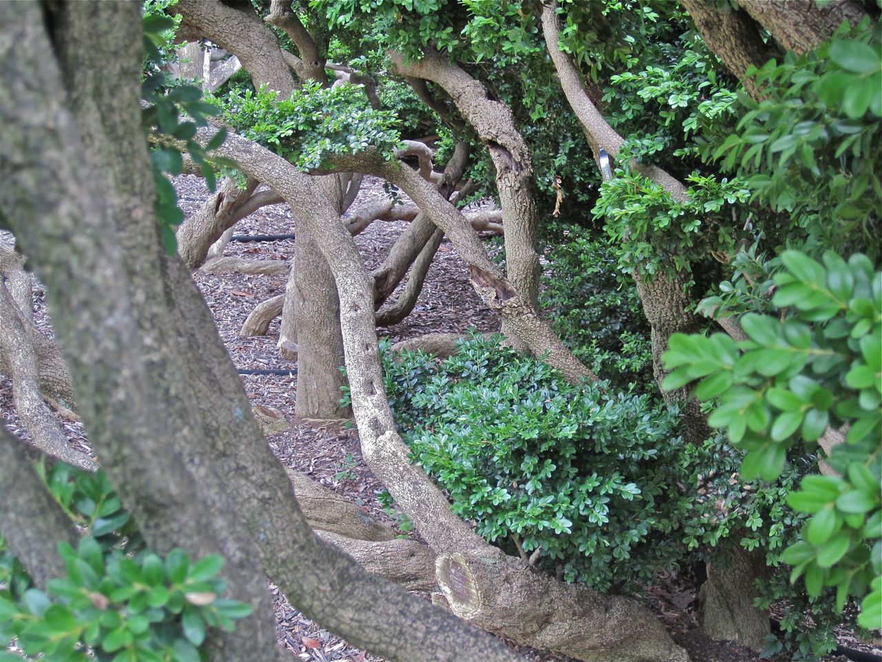 My sympathies to the Foundation, but I find the old shrubs’ new negative spaces and sculptural qualities beautiful and rather moving, and I took photo after photo.