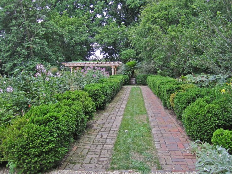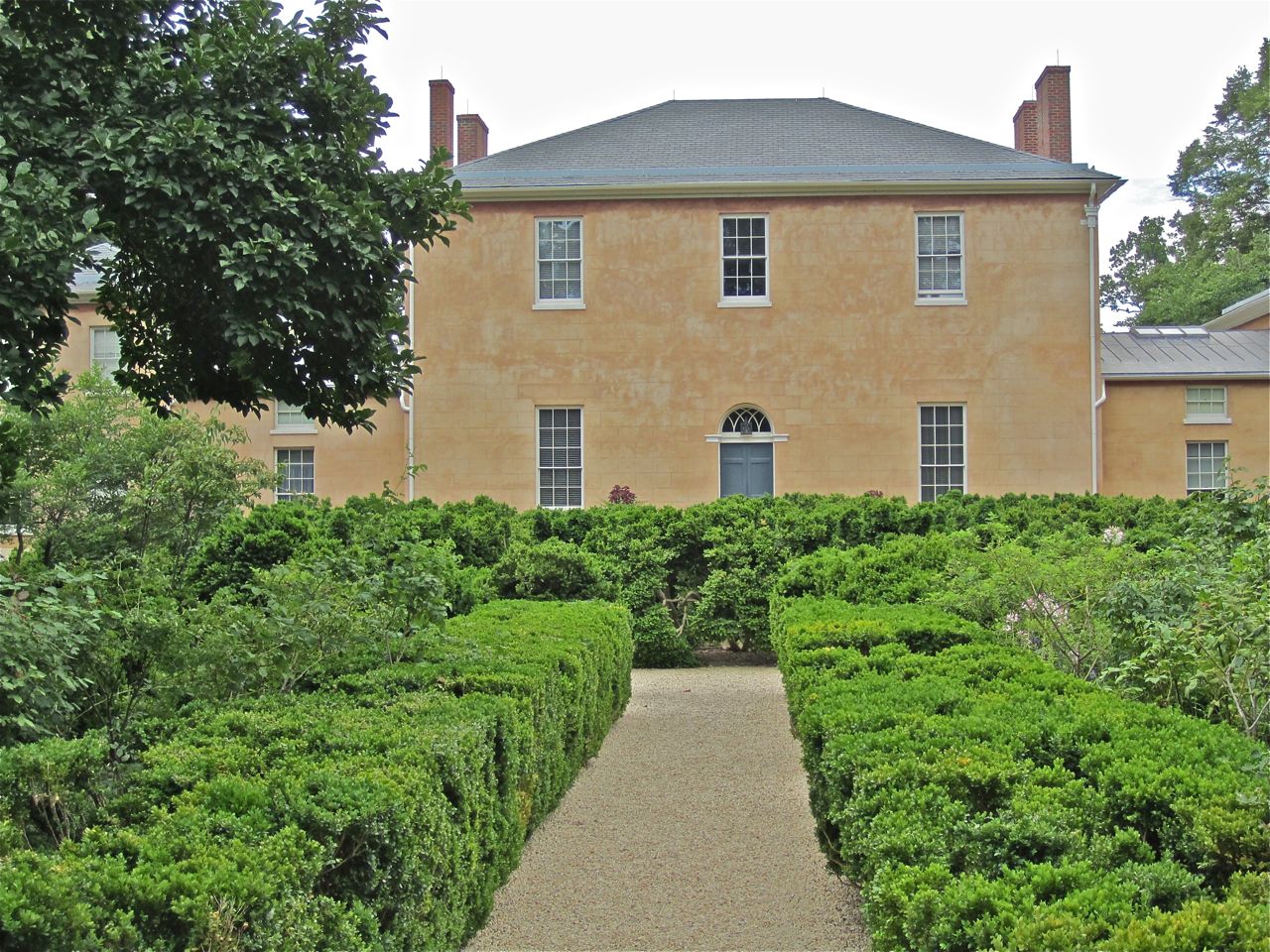 The walkways and rose/knot garden existed in their current layouts by the 1830s. But the knot garden was destroyed in the 1860s by intruders seeking boxwood for Christmas wreaths. It was replanted by the last Peter owner in the 1930s, using old family plans, although he moved it to the opposite side of the center walkway.