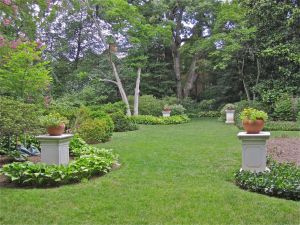 A walk along the bowling green seen through old boxwood. Click on photo to enlarge.