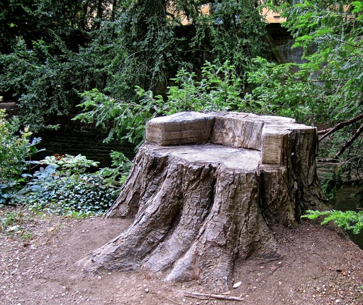 I have a number of photos to share, but I thought I’d start with this one — of a seat roughly carved from a tree stump left at the edge of a path along the River Cherwell, behind Magdalen College, Oxford.
