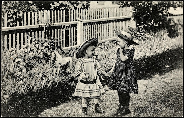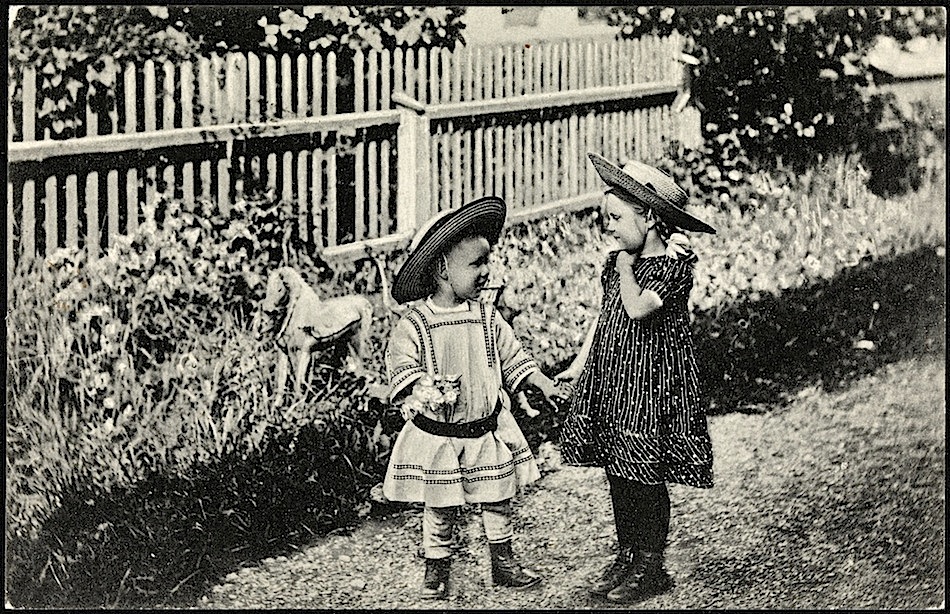 “To uidentifiserte barn på en sti” (two unidentified children on a path), ca. 1910, place and photographer unknown, via Nasjonalbiblioteket/National Library of Norway.