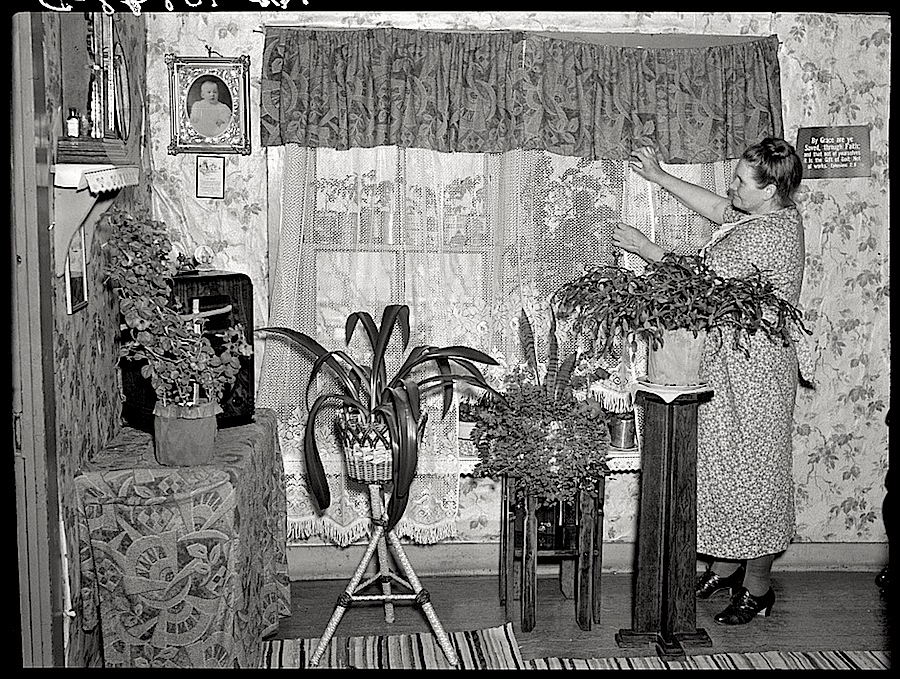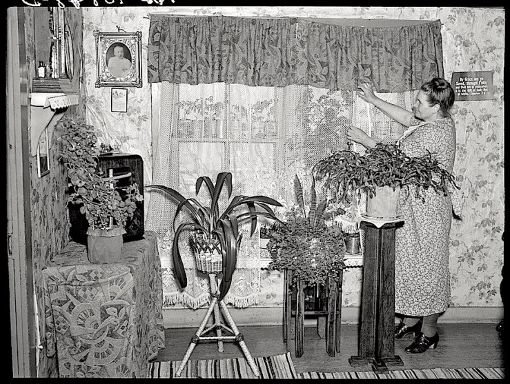 “Mrs. Herman Perry in her home at Mansfield, Iron County, Michigan,” May 1937, by Russell Lee, via Library of Congress Prints and Photographs Division.