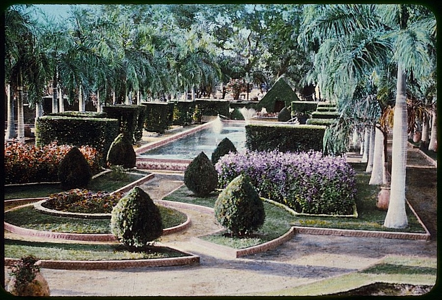 Yellow flag iris (I. pseudacorus) in the basins of the Italian Gardens of Kensington Gardens, London, June 1924, by Roger Dumas, via Archives of the Planet Collection – Albert Kahn Museum /Département des Hauts-de-Seine.