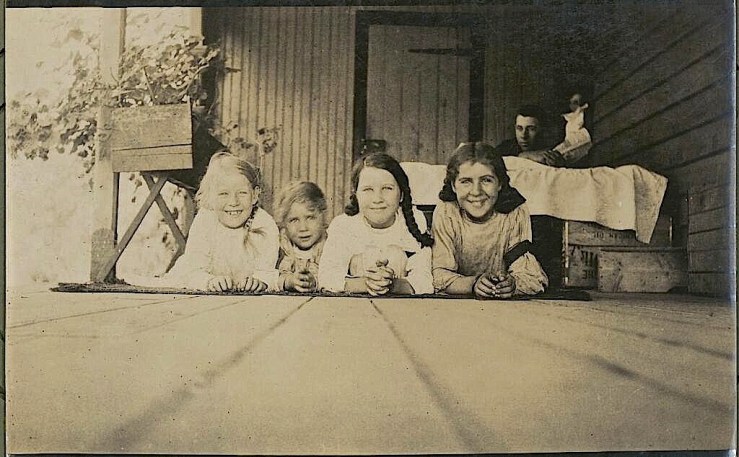 “Portrait of four girls and a man on a verandah,” Dubbo area, New South Wales, ca. 1915, by Edward Challis Kempe, via National Library of Australia Commons on flickr.