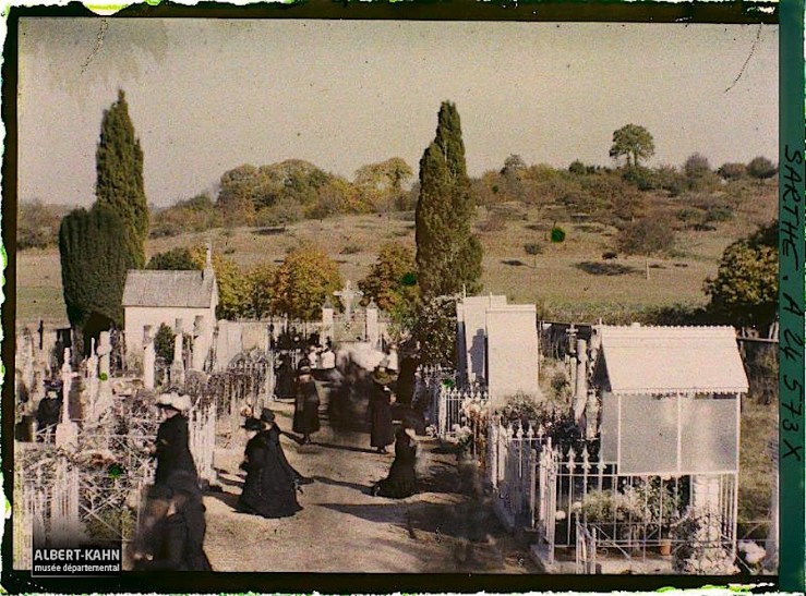 “Procession at the cemetery of Verneuil-le-Chétif” (Sarthe, Pays de la Loire), France, November 2, 1920, by Roger Dumas, via Archives of the Planet Collection – Albert Kahn Museum /Département des Hauts-de-Seine.