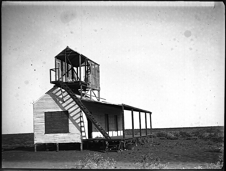 “Dwelling with ladder and wooden structure on top,” Dunbar, Queensland, between 1900 and 1951, by John Flynn, via Australian Inland Mission Collection, National Library of Australia Commons on flickr.