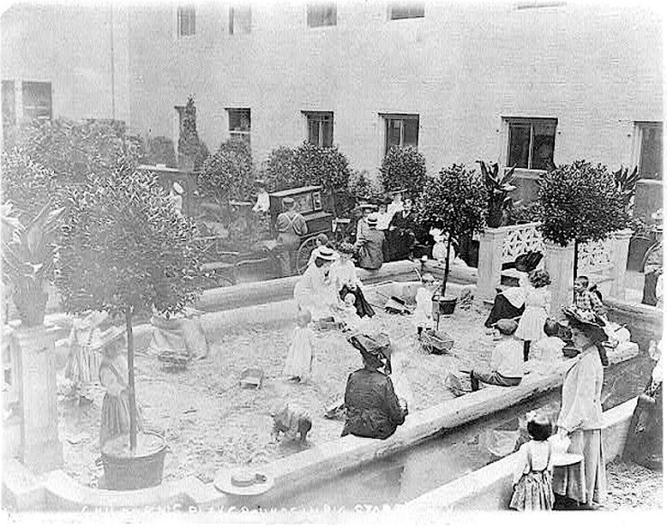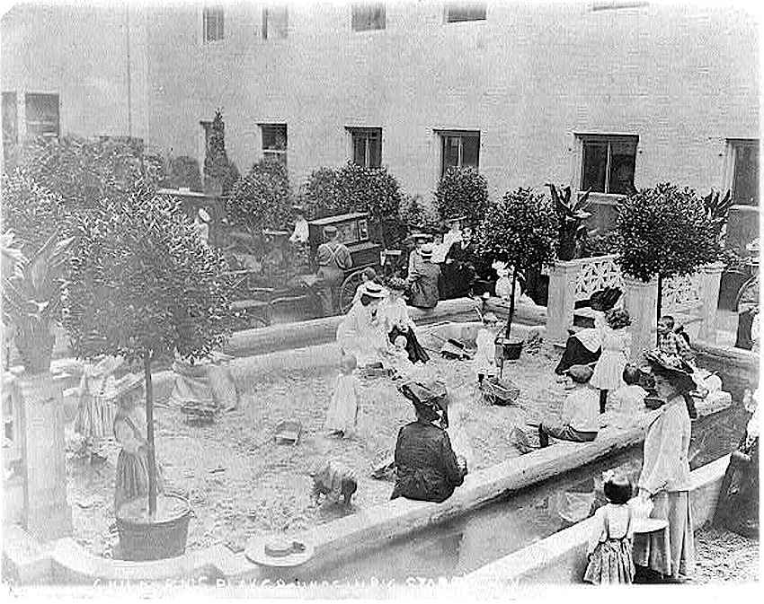 Looking from the terrace to the sandbox, same house, photographer, and source.