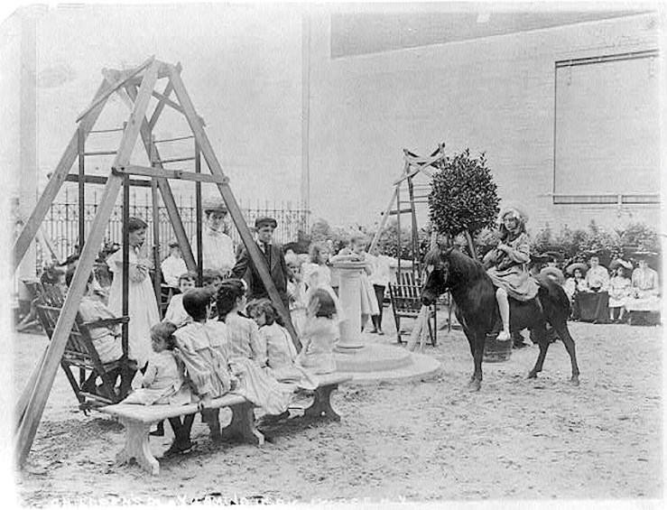 What a nice-looking small outdoor space for both the parents and a child. (For grass, they had Central Park only three blocks away.)