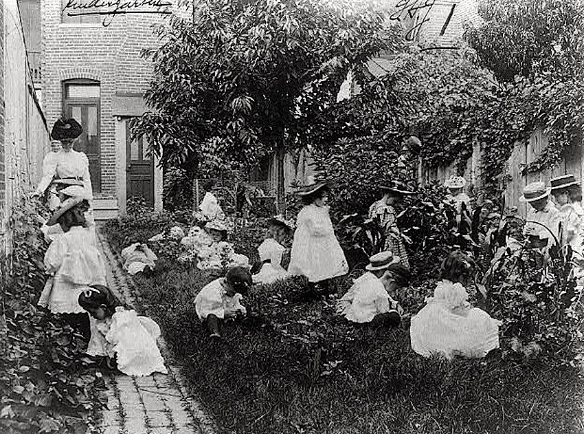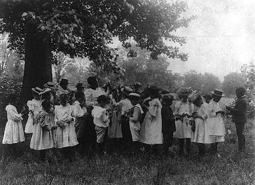 “Schoolchildren with teachers under Magnolia trees on Oxford* Street,” c. 1910, an autochrome by Charles C. Zoller, via George Eastman House Collection on flickr.