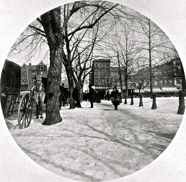 Above: “Market scene, Washington, D.C., snow view,” 1889, by Uriah Hunt Painter. I don’t know which square is pictured in these photos.