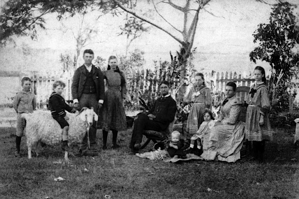 The Tambo family posing among the plants in front of their homestead of Malayta Hill near Nambour, Queensland, 1906, by A. W. Newbery, via State Library of Queensland Commons on flickr.