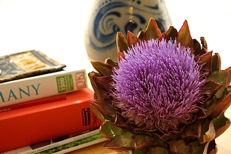 I found this china bowl on Saturday at the weekly Stuttgart flohmarkt (flea market). It has a transferware pattern and two stripes of orange lusterware glaze. The mark on the bottom says “made in USSR.” It cost me €7, and I am very pleased with myself about it.