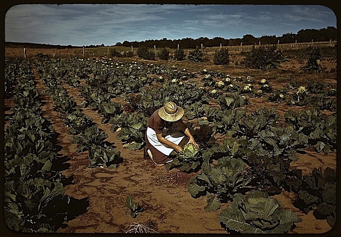 Mrs. Jim Norris with homegrown cabbage, Pie Town, New Mexico, October 1940, by Russell Lee, via Library of Congress Prints and Photographs Division.
