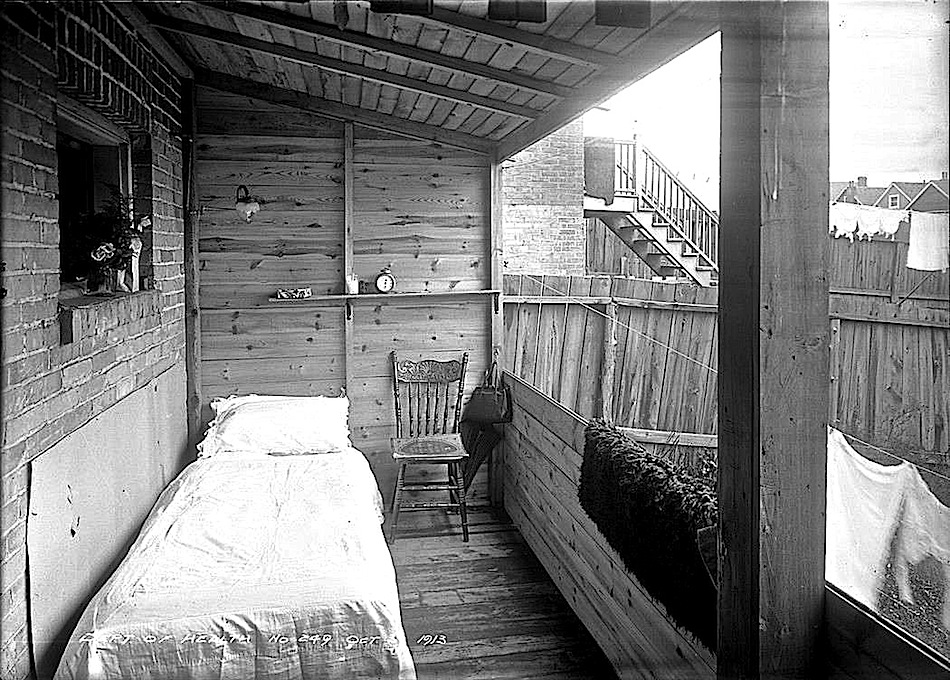 Sleeping porch, Toronto, October 1913, via Department of Health Collection (Fonds 200, Series 372), City of Toronto Archives.