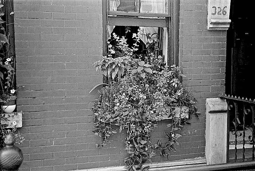 Flowers in a window at 326 East 61st Street, New York City, 1938, by Walker Evans, via Library of Congress Prints and Photographs Division.