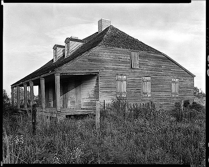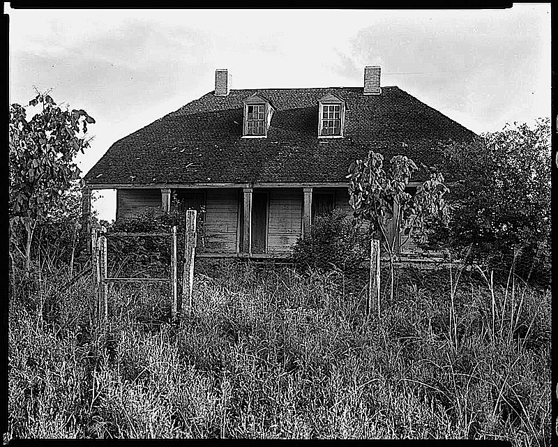 “House, small, hipped roof, New Roads vic., Point Coupee Parish, Louisiana,” 1938, by Frances Benjamin Johnston, via Library of Congress Prints and Photographs Division.