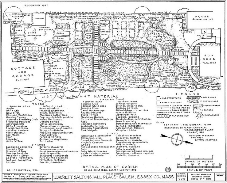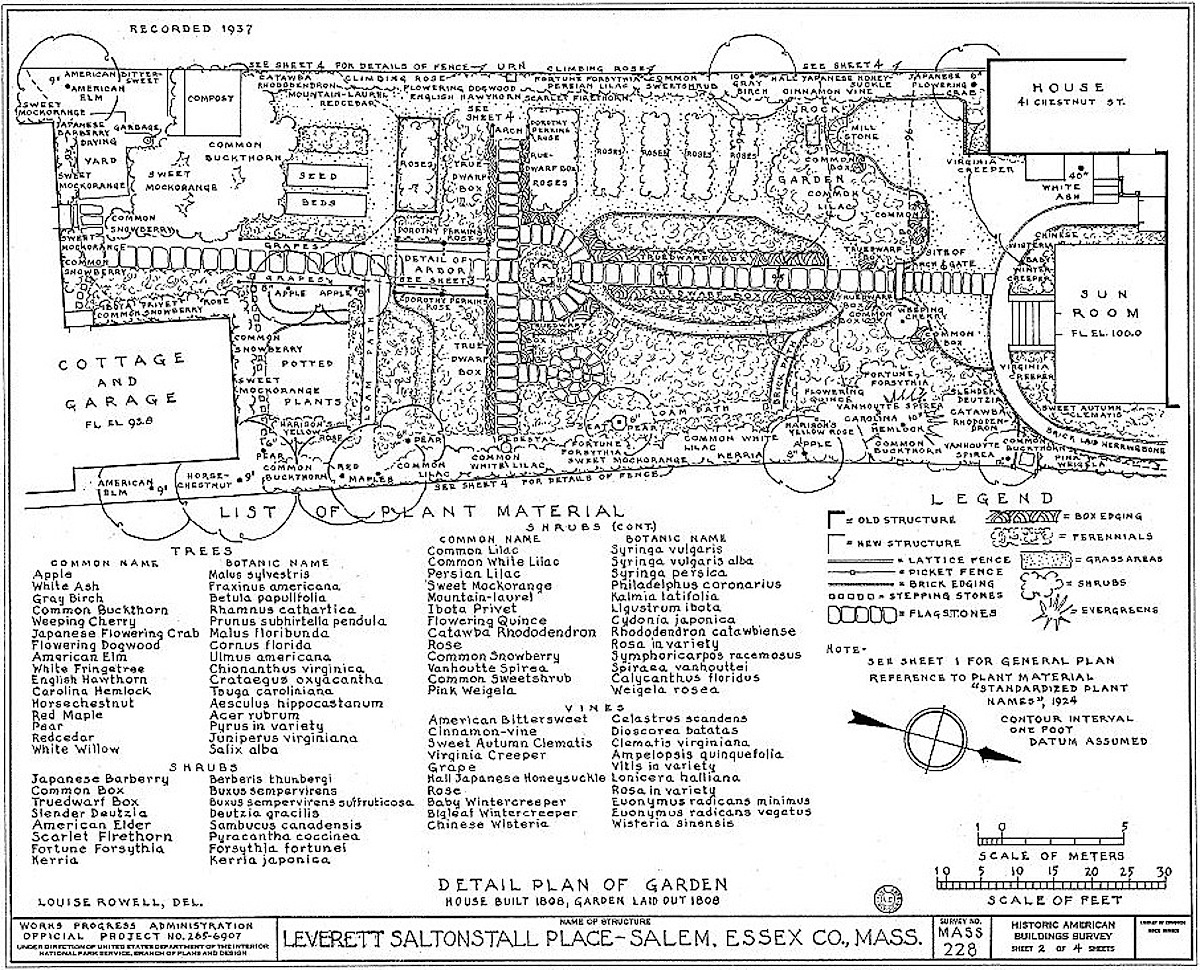 View of garden, looking south, Leverett Saltonstall Place, 41 Chestnut Street, Salem, Massachusetts, June 1940, by Frank O. Branzetti for an Historic American Buildings Survey (HABS), via Library of Congress Prints and Photographs Division (both photos).