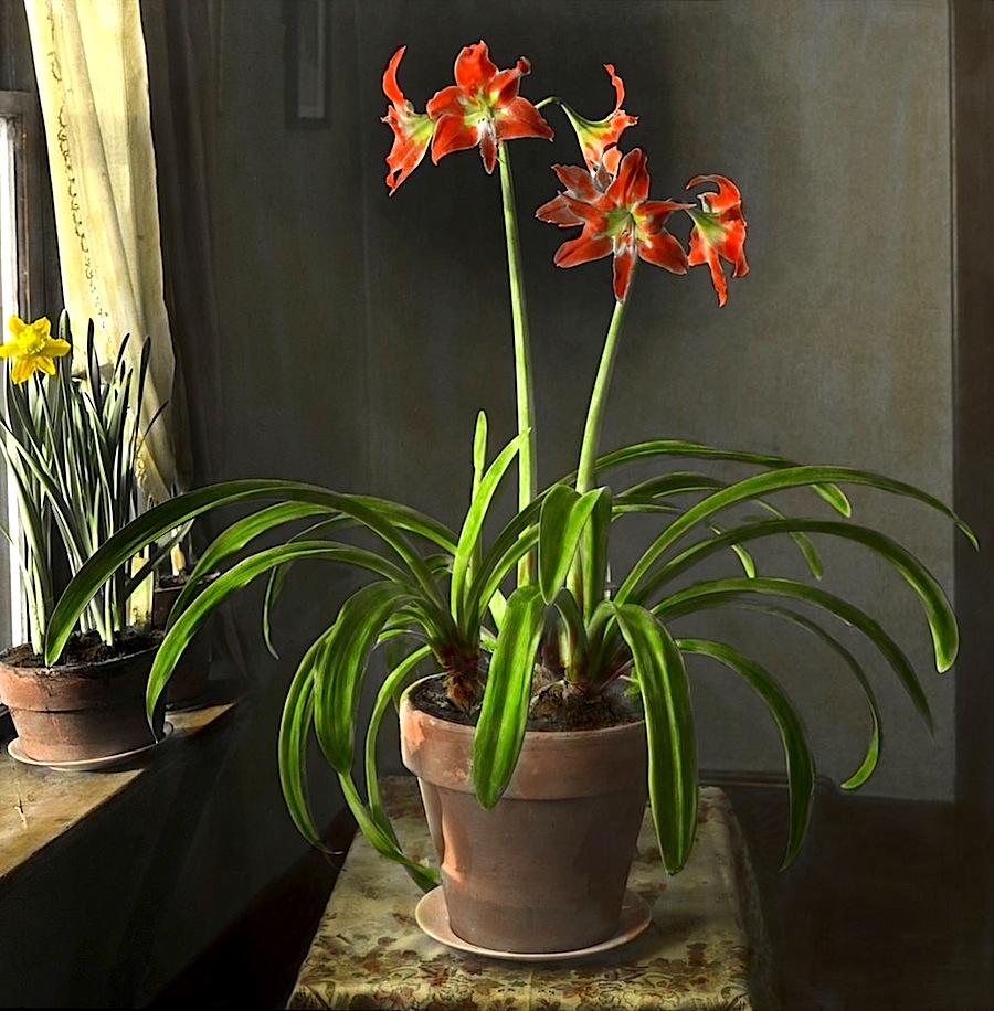 I don’t know if this photo was really taken in winter or not, although the tulips on the table could have come from a greenhouse in February.